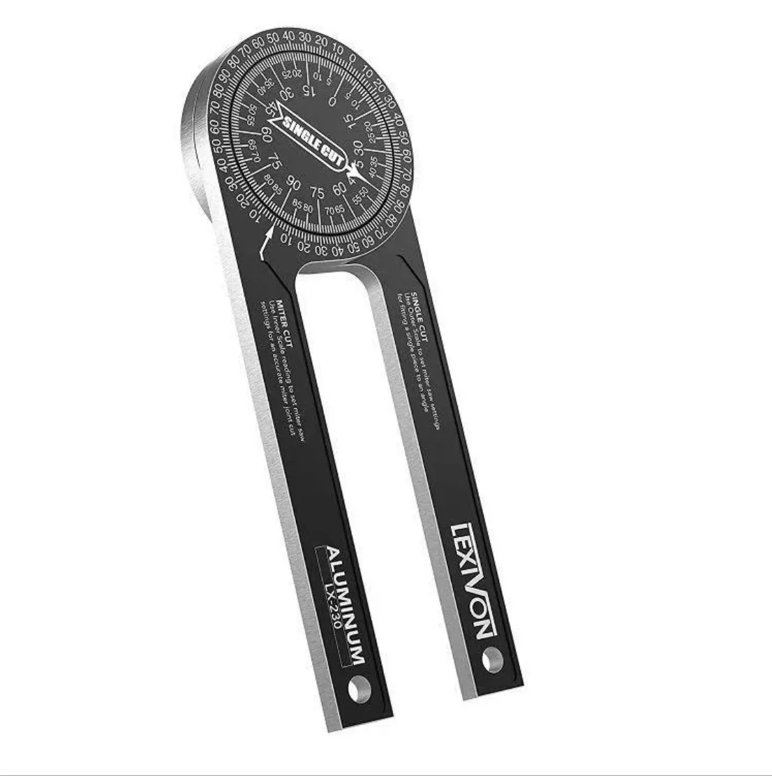 Two dials directly transfer your working angle to the miter saw to obtain accurate miter and single-cut angle data. The hinge mechanism allows a full 360-degree measurement of the inside and outside angles and the reverse angle.