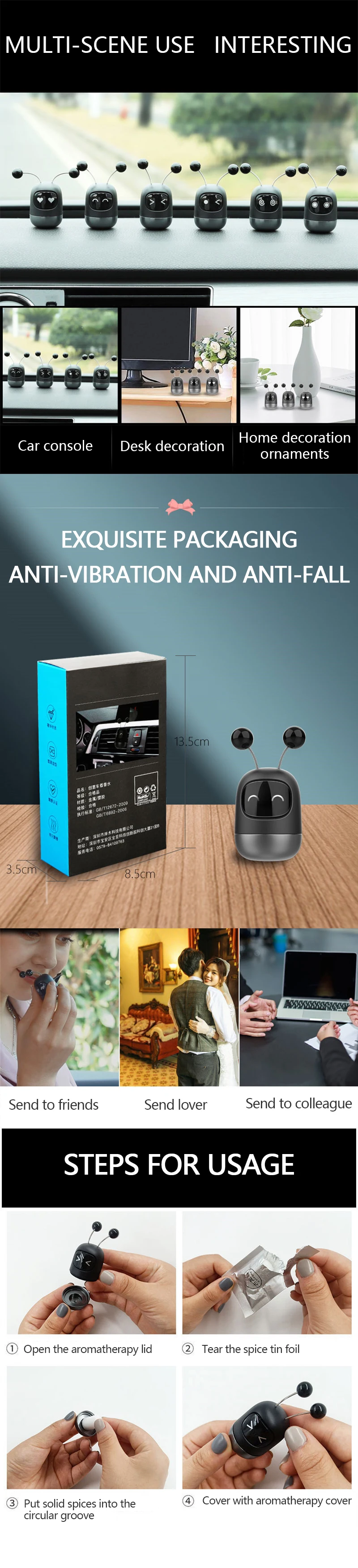 Very cute and tender to the eye, their little antenitas move. Comes with 3 scent "pills"