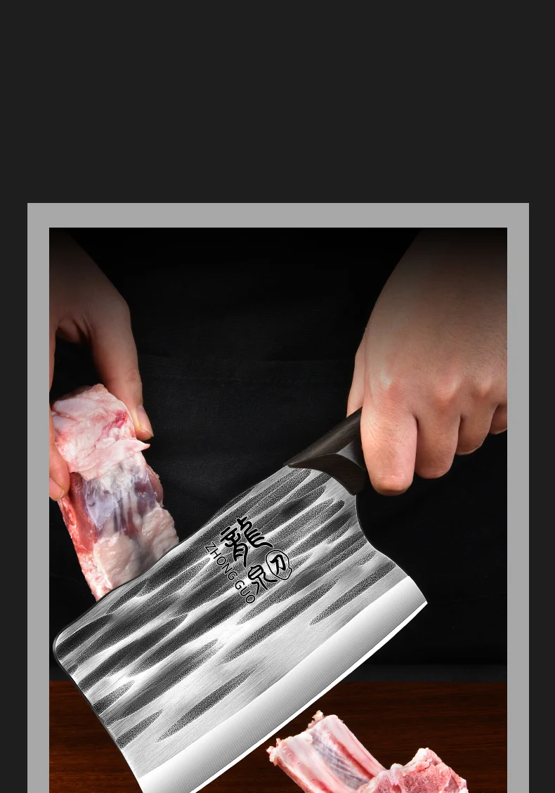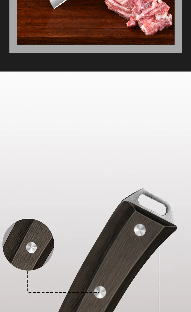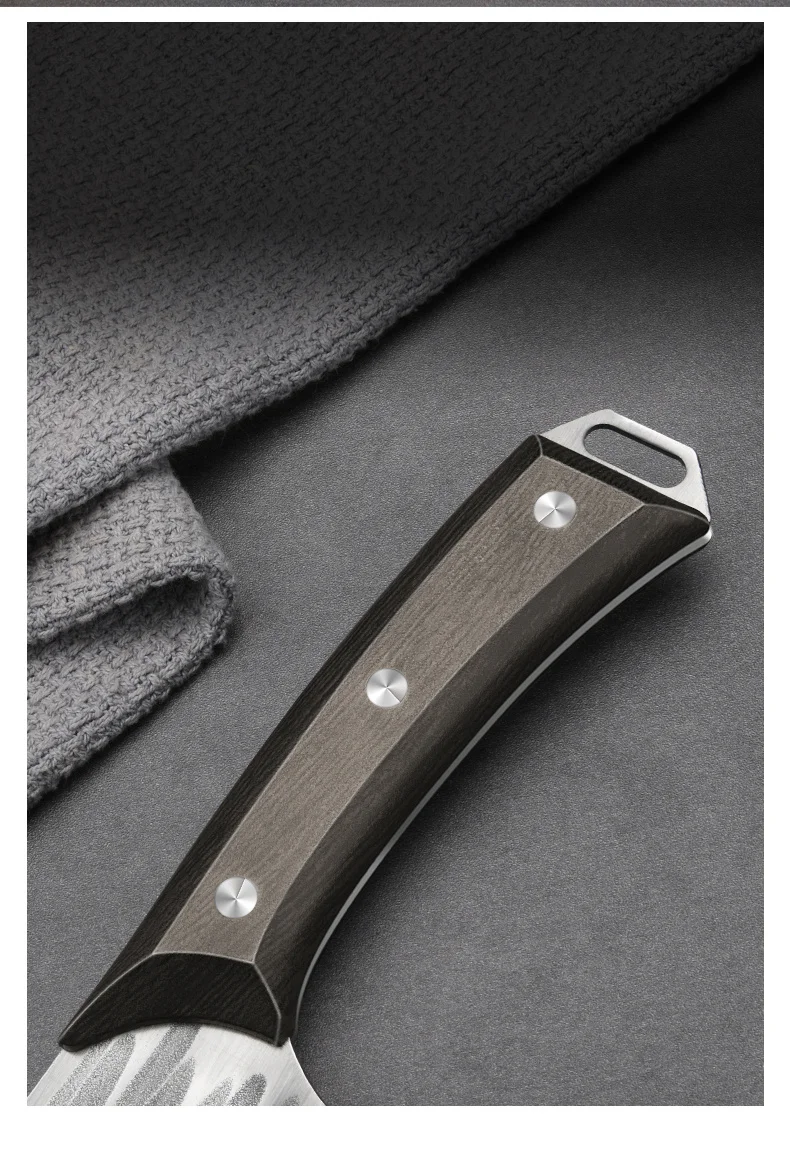 4. Hammer grain knife surface is manually forged to reduce steel density of air, reduce resistance, and cut food is not easy to stick.