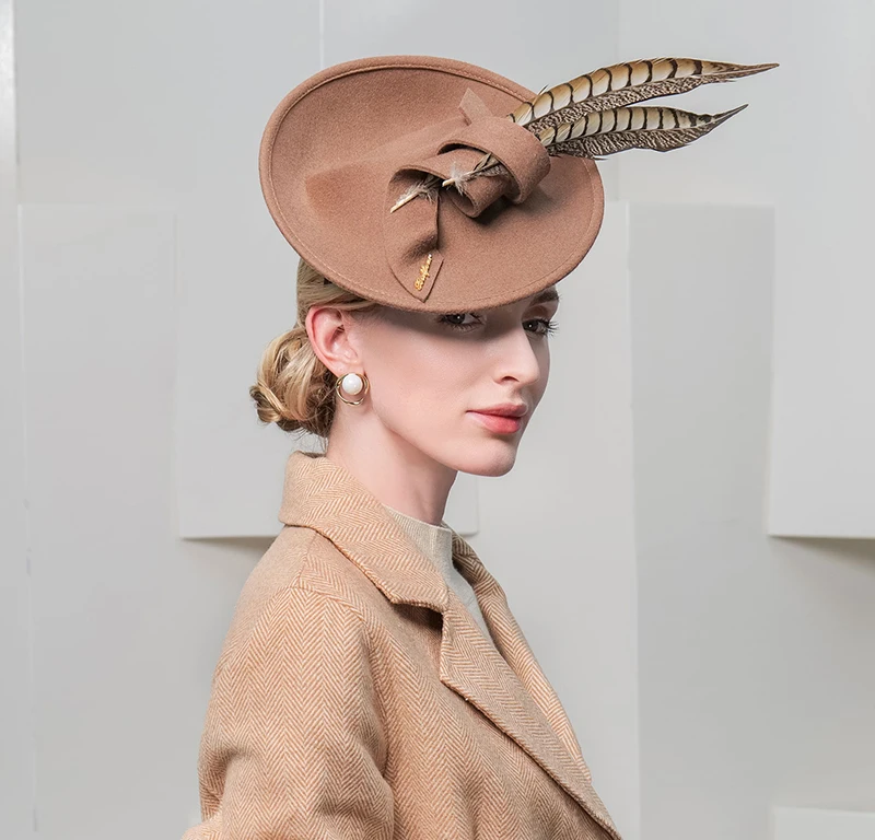 Fs Wedding Fascinators Bunker Cap With Feathers Kentucky Hats For Women Vintage Horse Racing Festival Wool Formal Derby Fedora