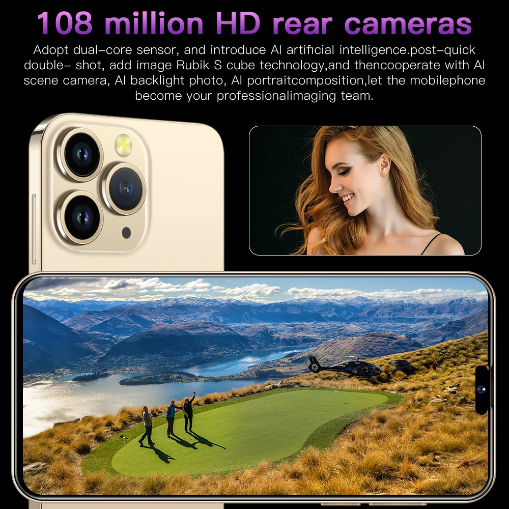 The i15proMax features a 108MP camera combination. The main camera sports a large f/1.8 aperture and 1.28um pixels, This strong combination boosts photo-sensitivity in backlight or low light, Just point and shoot, and i15proMax will make sure your pictures remain clear and bright.