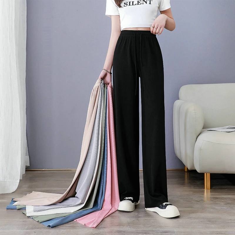 Ice Silk Wide-Leg Pants Women Cool Sweatpants Summer