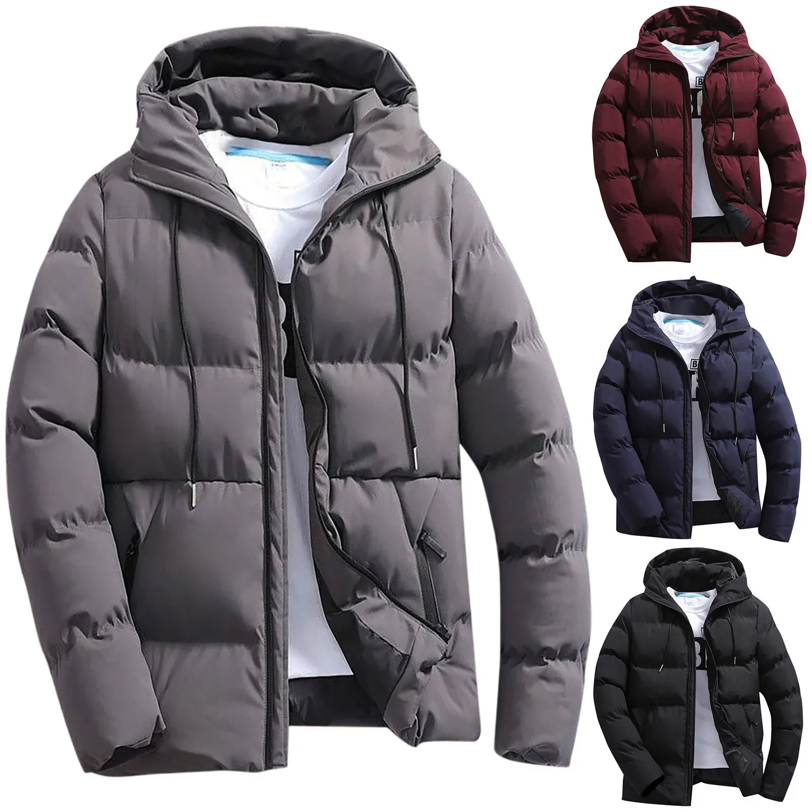 Men Autumn And Winter Solid Zipper Hooded Loose Outdoor Cotton Coat Top Blouse Jacket
