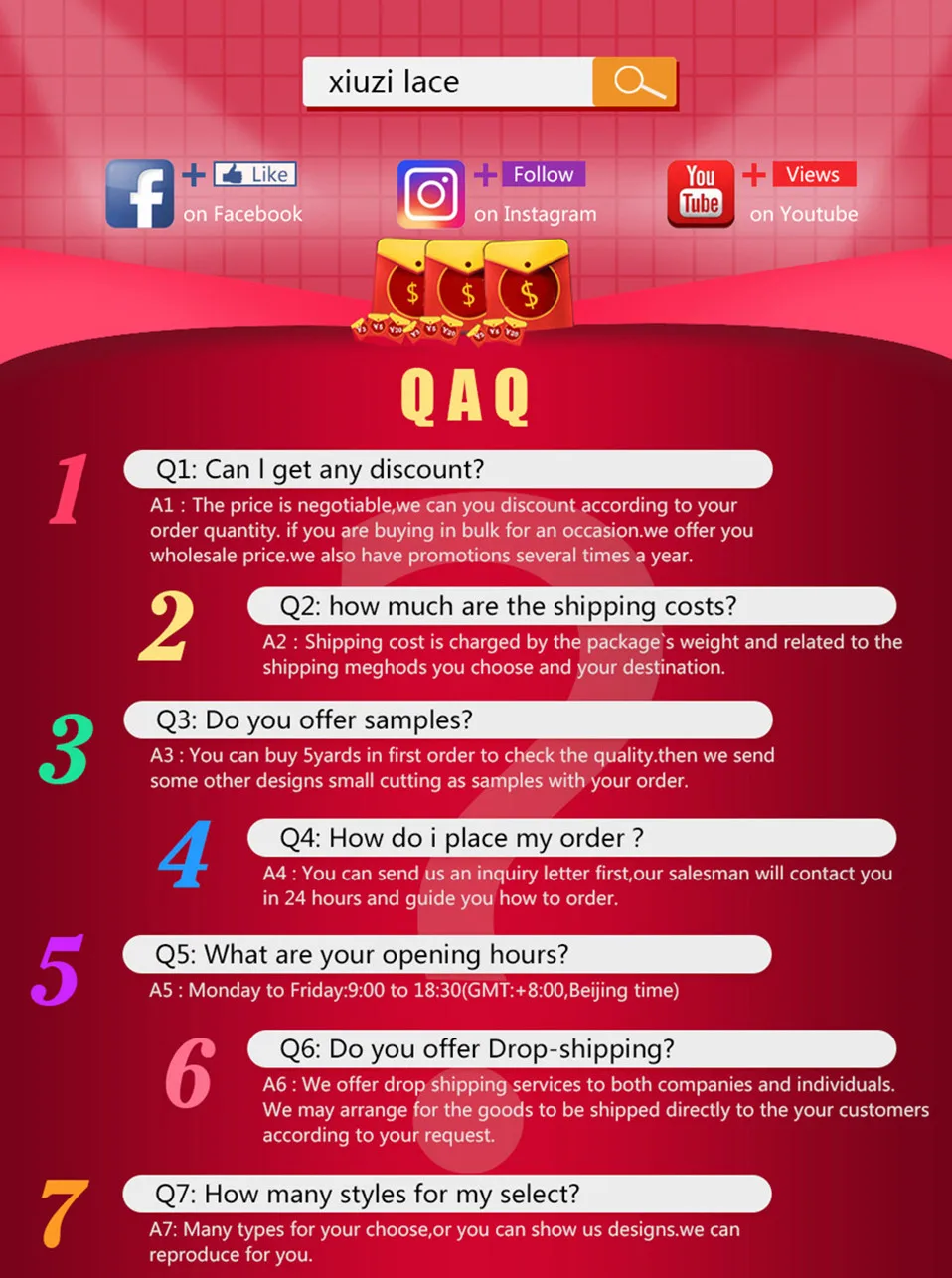 Package includes: 5 yards of lace fabric
