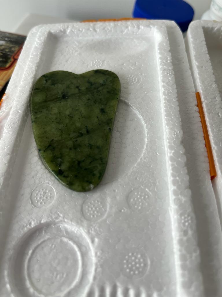 Jade is a natural growth thing. Cotton, fold and texture are inevitable in the middle of jade. These are not defects. Natural jade has more or less some defects. This product is made of natural jade by hand. The color, grain, shape and thickness of each piece and the other piece are not identical. Please understand before purchasing.If you have any questions, please contact us as soon as possible,thank you!