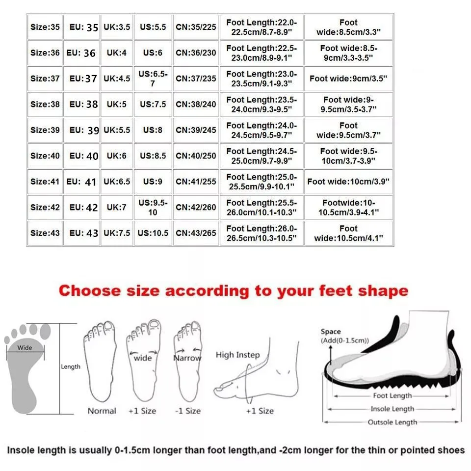 3.Please do not measure the insole length,it is different from the foot length.