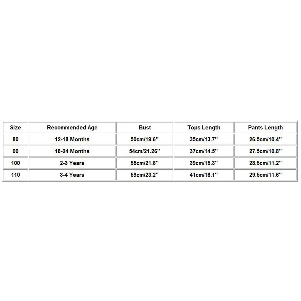 Size Recommended Age Bust Tops Length Pants Length