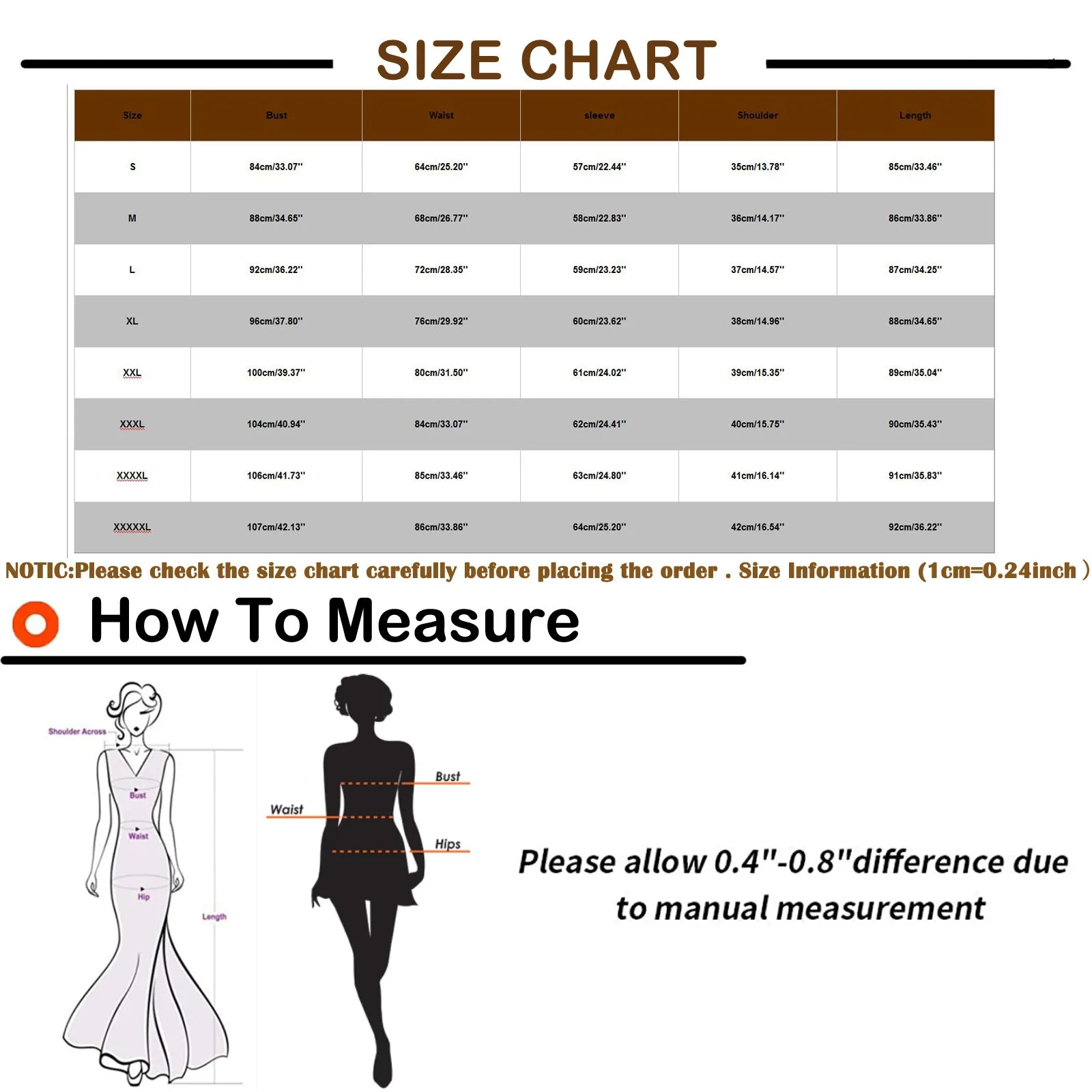 Size Bust Waist sleeve Shoulder Length