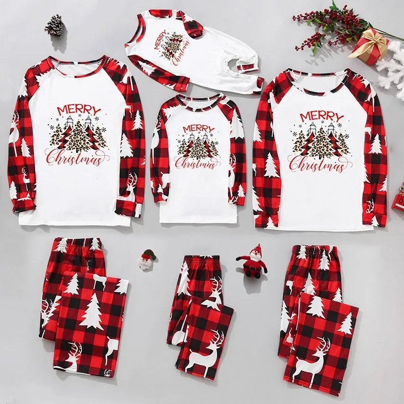 Family Pajamas Santa Tree Patchwork Merry Christmas Matching Clothes